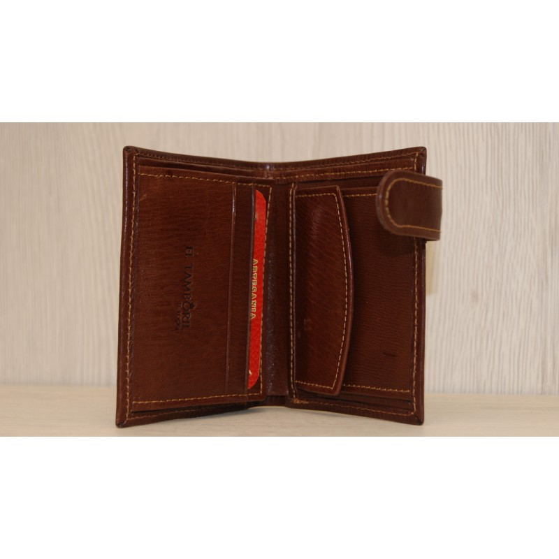 Cartera de piel artesana. Doble zona para las tarjetas y billetes. Con cierre. Disponible en color marrón y color avellana